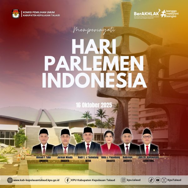 Hai #TemanPemilih, Komisi Pemilihan Umum (KPU) Kabupaten Kepulauan Talaud mengucapkan selamat memperingati hari Parlemen Indonesia 16 Oktober 2025. #KPUMelayani ....