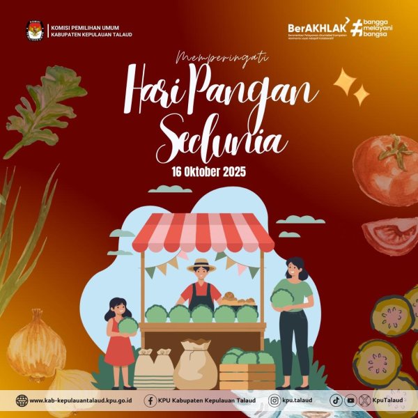Hai #TemanPemilih, Segenap Jajaran KPU Kabupaten Kepulauan Talaud mengucapkan selamat memperingati Hari Pangan Sedunia 16 Oktober 2025 #KPUMelayani ....