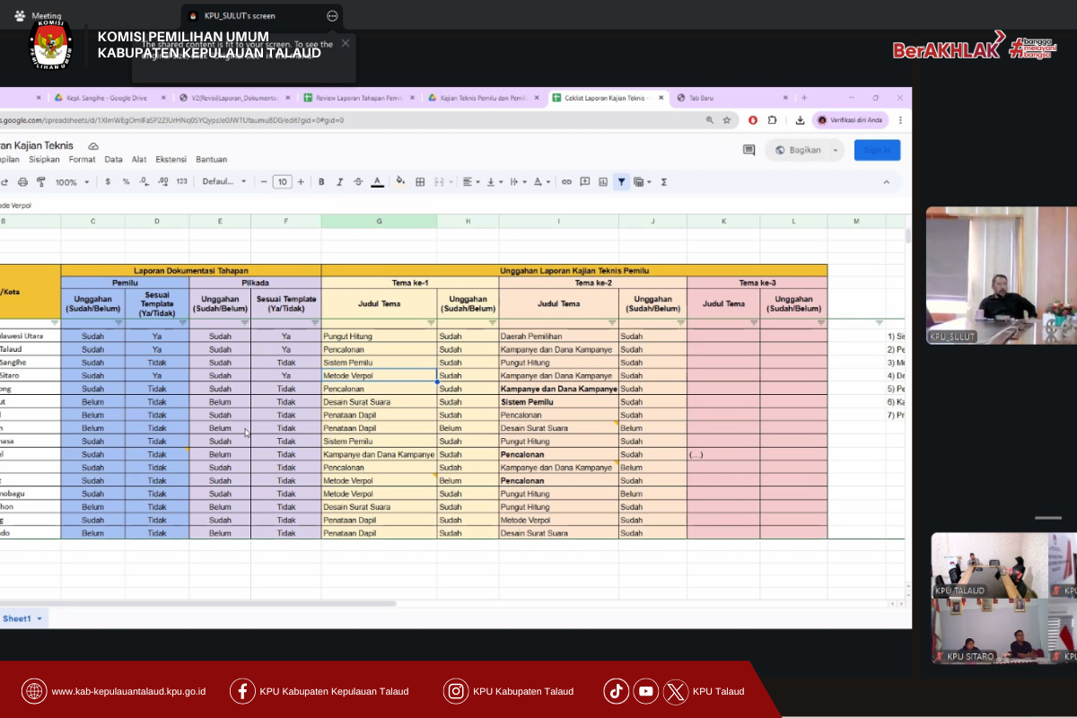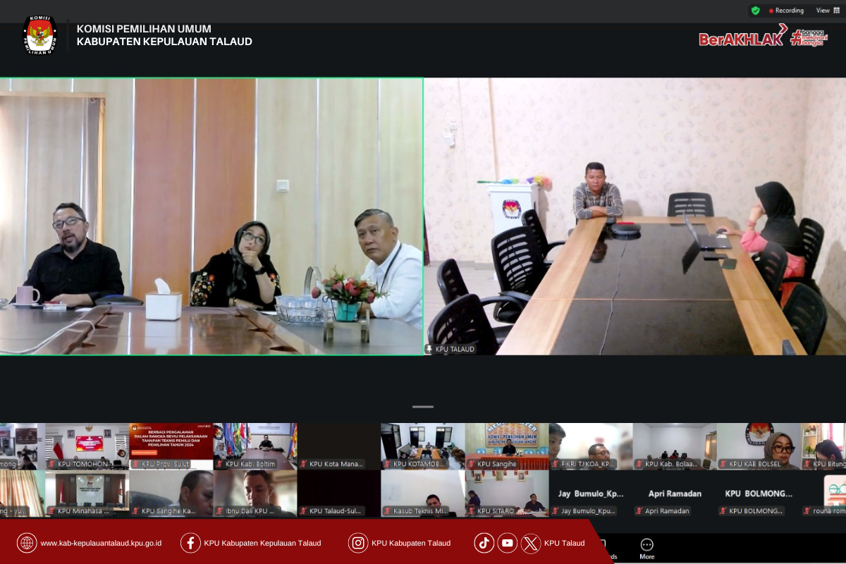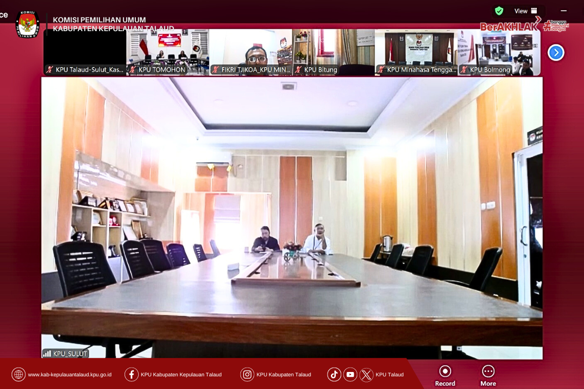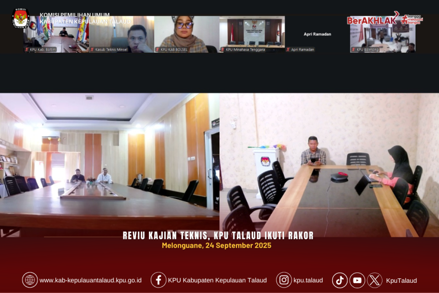 Melonguane, kab-kpulauantalaud kpu.go.id- KPU Kabupaten Kepulauan Talaud Ikuti Rapat Koordinasi Reviu dan Monitoring Penyampaian Laporan Kegiatan Kajian Teknis Pemilu dan Pemilihan Tahun 2024 yang diselenggarakan oleh KPU Provinsi Sulawesi Utara melalui zoom metiing Rabu (24/09/2025)
