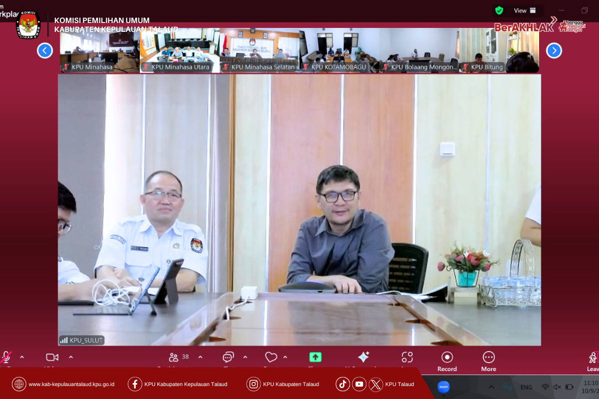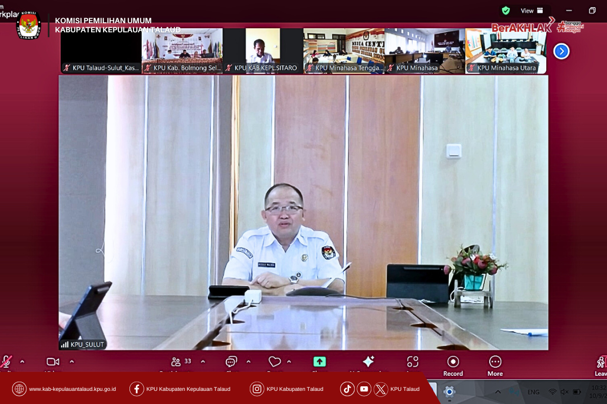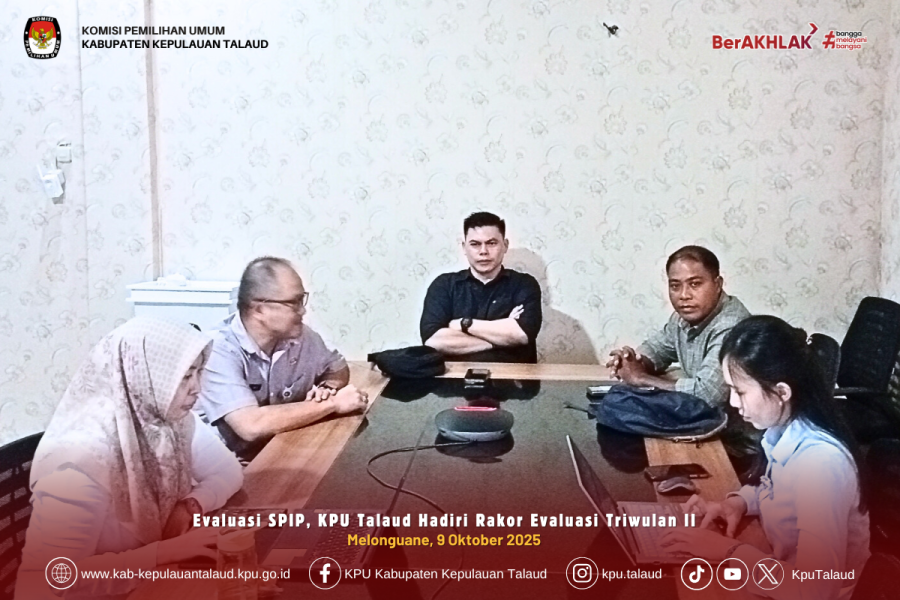 Melonguane, kab-kepulauantalaud.kpu.go.id- KPU Kabupaten Kepulauan Talaud mengikuti Rapat Koordinasi terkait Hasil Monitoring dan Evaluasi Kartu Kendali SPIP Triwulan II serta Pembahasan Kartu Kendali SPIP Periode bulan September 2025, Kamis (09/10/2025)