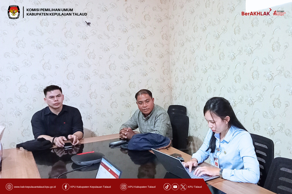 Turut hadir Ketua KPU Talaud Andri L. J. Sumolang, Anggota KPU Divisi Hukum & Pengawasan Jekman Wauda, Sekretaris KPU Talaud Jan Ch. Kumaunang serta Kasubbag dan Operator SPIP.