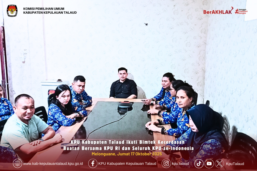 Melonguane, kab-kepulauantalaud.kpu.go.id- KPU Kabupaten Kepulauan Talaud turut serta dalam kegiatan Bimbingan Teknis (Bimtek) Kecerdasan Buatan (Artificial Intelligence/AI) yang diselenggarakan oleh KPU Republik Indonesia. Kegiatan ini diikuti oleh seluruh KPU provinsi dan kabupaten/kota se-Indonesia secara serentak pada Jumat, 17 Oktober 2025.