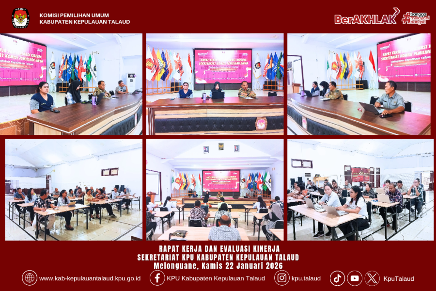 kab-kepulauantalaud.kpu.go.id – Sekretariat KPU Kabupaten Kepulauan Talaud menggelar Rapat Kerja dan Evaluasi Kinerja pada Kamis, 22 Januari 2026, bertempat di lingkungan Sekretariat KPU Kabupaten Kepulauan Talaud.