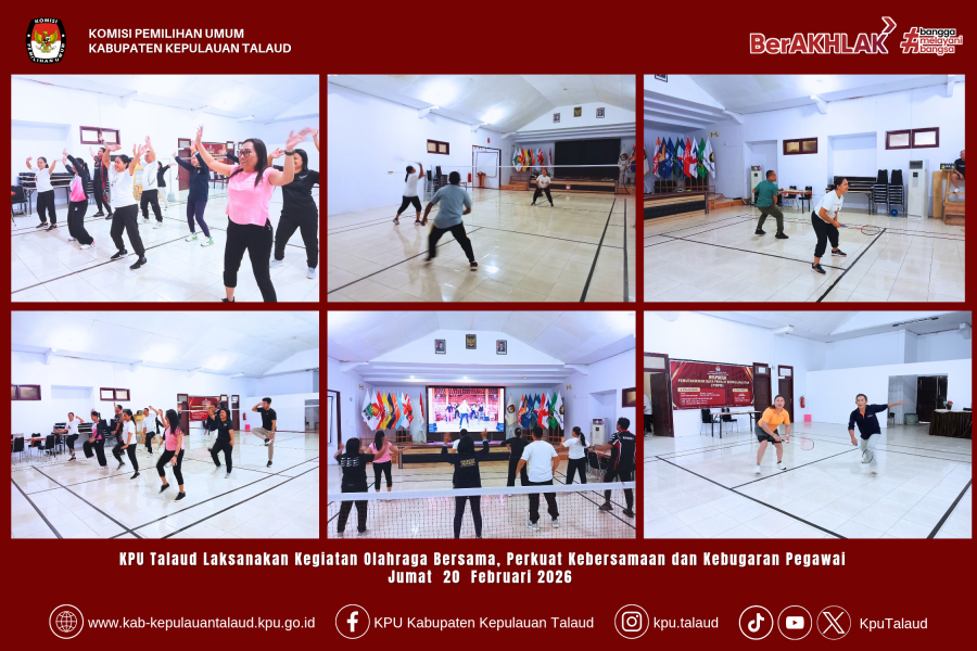 kab-kepulauantalaud.kpu.go.id – Komisi Pemilihan Umum Kabupaten Kepulauan Talaud (KPU Talaud) kembali menggelar kegiatan olahraga bersama pada Jumat, 20 Februari 2026. Kegiatan ini dilaksanakan sebagai bagian dari upaya menjaga kebugaran jasmani serta mempererat kebersamaan di lingkungan kerja.