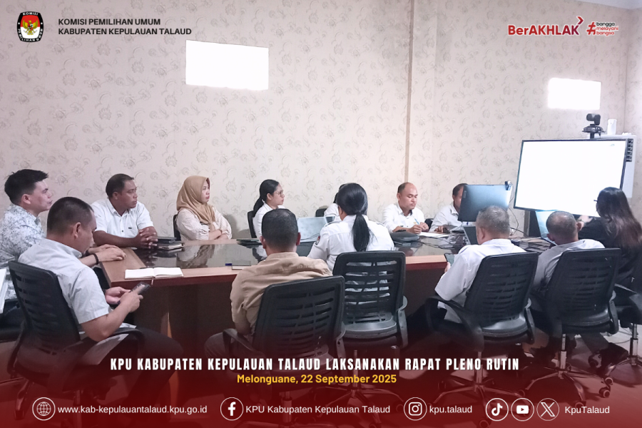 Melonguane, kab-kepulauantalaud.kpu.go.id- KPU Kabupaten Kepulauan Talaud melaksanakan Rapat Pleno Rutin di ruang rapat Senin, 22 September 2025.