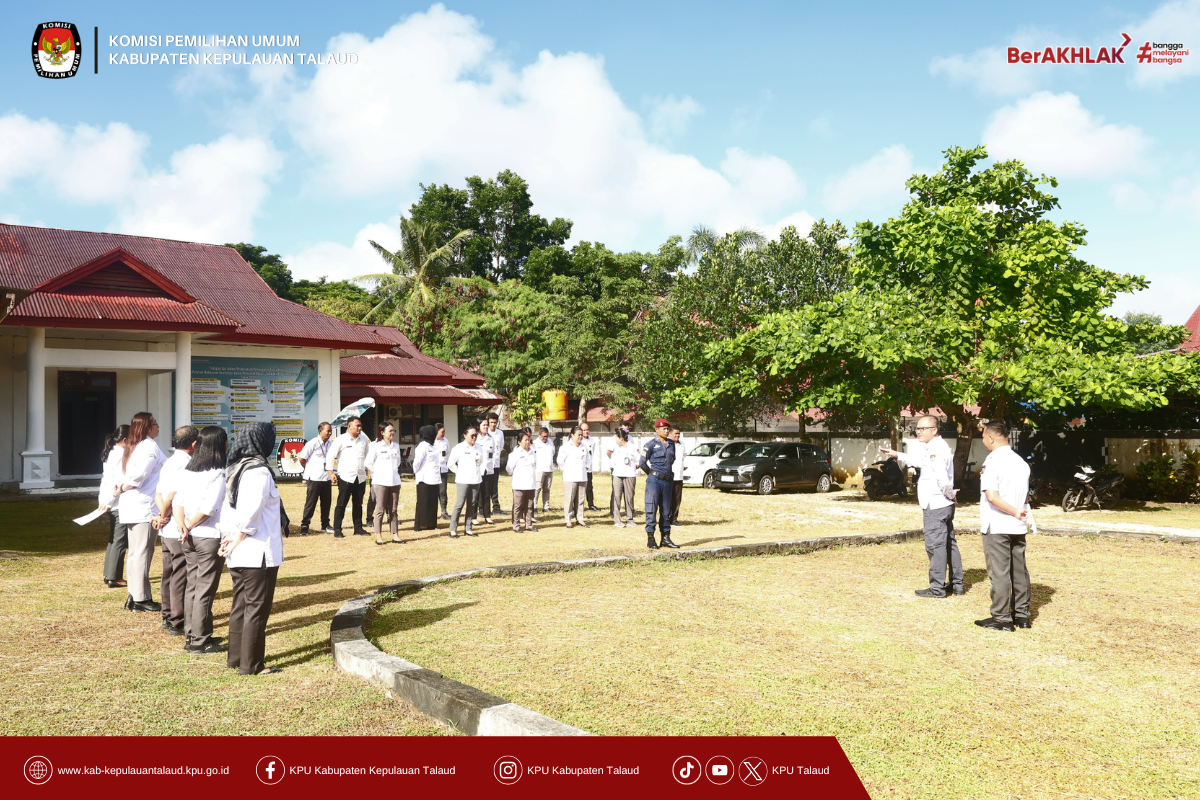 Melonguane, kab-kepulauantalaud.kpu.go.id- KPU Kabupaten Kepulauan Talaud Rutin laksanakan Apel Pagi bertempat di Halaman Kantor KPU Dan Ibadah Bersama Senin, 4 Agustus 2025.