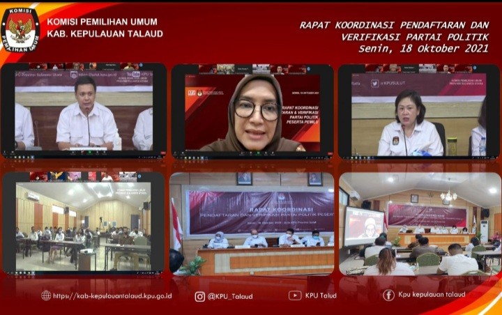 Melonguane, kab-kepulauantalaud.kpu.go.id - Senin, (18/10/2021) KPU Kabupaten Kepulauan Talaud mengikuti rapat koordinasi mengenai Persiapan Pendaftaran dan Verifikasi Partai Politik Peserta Pemilu, yang diselenggarakan oleh KPU Provinsi Sulawesi Utara secara luring dan daring. Peserta pada kegiatan ini adalah Komisioner Divisi Teknis Penyelenggaraan, Kepala Sub Bagian Teknis dan Hupmas di 15 KPU Kabupaten/Kota dan Pengurus Partai Politik pada tingkat Provinsi Se-Sulawesi Utara. Kegiatan ini dibuka langsung oleh Ketua KPU Provinsi Sulawesi Utara (Ardiles Mewoh), Narasumber adalah Anggota KPU RI Divisi Teknis Penyelenggaraan, Evi Novida Ginting Manik. (tekmas)