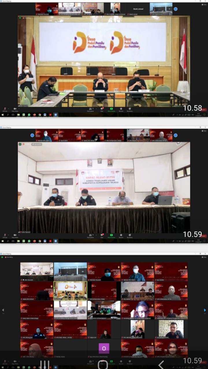 Melonguane, https://kab-kepulauantalaud.kpu.go.id - Rabu (25/8/2021), KPU Kabupaten Kepulauan Talaud mengikuti Rapat Koordinasi Kesiapan Kegiatan Desa Peduli Pemilu dan Pemilihan (DP3) melalui Zoom Meeting, sesuai undangan nomor : 321/PP.06-Und/71/Prov/VIII/2021 dengan peserta rapat adalah Ketua, Anggota KPU, Sekretaris dan Kasubbag Tekmas 15 Kabupaten/Kota Se-Sulawesi Utara.