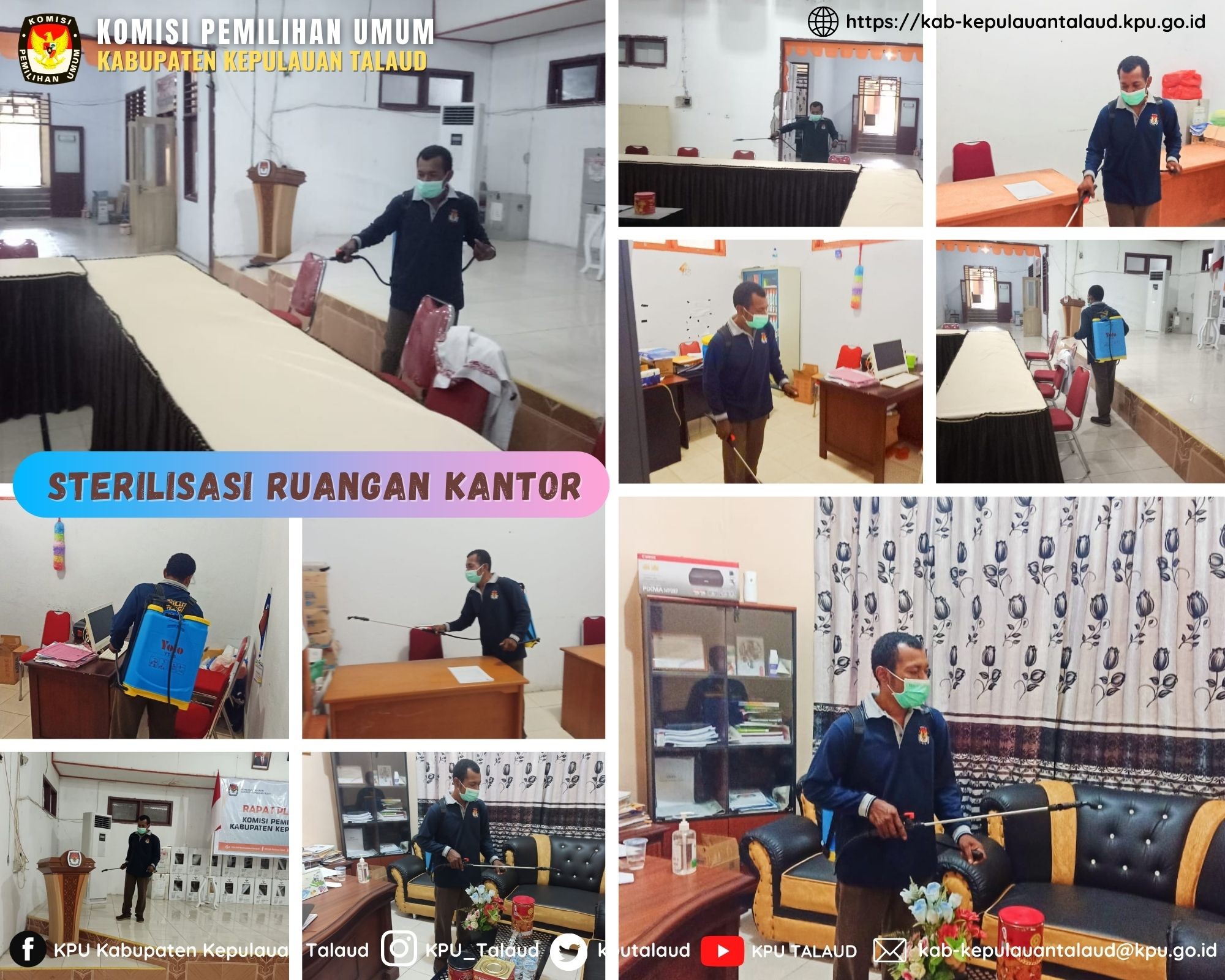 STERILISASI | KANTOR KPU TALAUD DISEMPROT DISINFEKTAN
