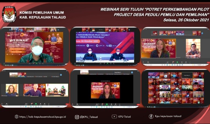 Melonguane, kab-kepulauantalaud.kpu.go.id - Dalam rangka memperkenalkan, menggaungkan, dan melakukan diseminasi informasi seputar Program Desa Peduli Pemilu dan Pemilihan secara luas kepada masyarakat sebagai program kerja prioritas KPU dalam melakukan pendidikan pemilih berkelanjutan, KPU Kabupaten Kepulauan Talaud mengikuti Webinar Seri 7 (tujuh) pada Selasa (26/10/2021) dengan tema “Potret Perkembangan Pilot Project Desa Peduli Pemilu dan Pemilihan di Berbagai Daerah di Indonesia”. Webinar ini adalah seri terakhir yang diselenggarakan oleh KPU RI secara daring melalui aplikasi zoom meeting.