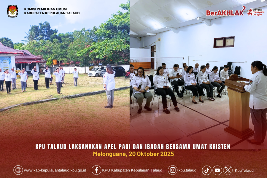 Melonguane, kab-kepulauantalaud.kpu.go.id- KPU Kabupaten Kepulauan Talaud laksanakan apel pagi bertempat di halaman kantor dan dilanjutkan dengan Ibadah Bersama, Senin, 20 Oktober 2025.